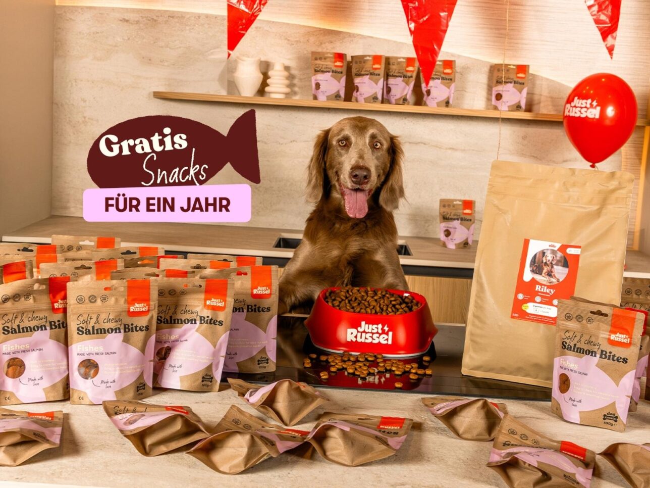 Teilnahmebedingungen: Dieses Angebot gilt nur für Neukund:innen, die zum ersten Mal ein individuelles Trockenfutter-Abo bei Just Russel abschließen. Zu jeder wiederkehrenden Futterlieferung erhältst du eine kostenlose 100g-Packung unserer Salmon Bites pro Hund. Die Aktion ist auf maximal 15 Gratis-Snackpacks pro Tier und Jahr begrenzt – unabhängig davon, wie oft geliefert wird. Die Snack-Sorte ist festgelegt und kann nicht ausgetauscht werden. Das Abo muss aktiv und ununterbrochen bleiben – bei Pausierung oder Kündigung entfällt der Anspruch auf kostenlose Snacks. Die Aktion ist zeitlich begrenzt und kann ohne Vorankündigung geändert oder eingestellt werden.
